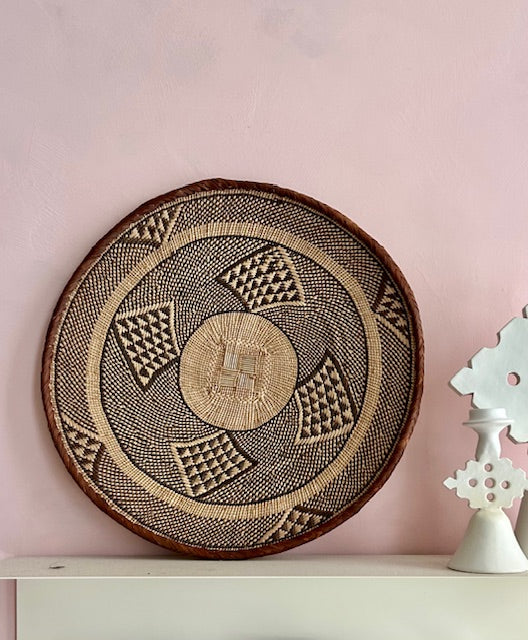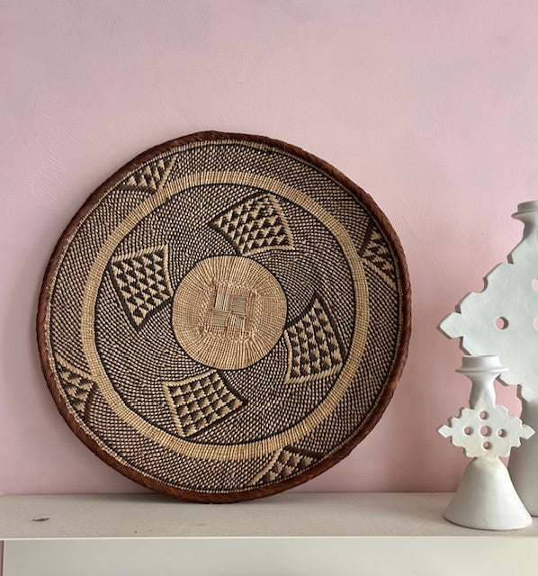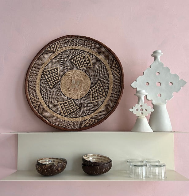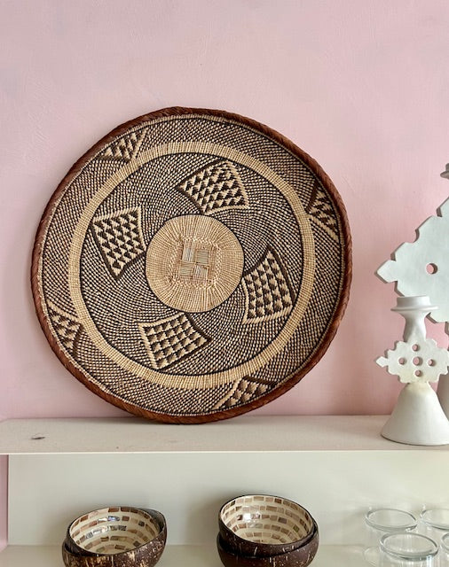 Deze decoratieve manden worden op traditionele wijze met de hand gevlochten door vrouwen in Binga, een dorp ten noorden van Zimbabwe. Oorspronkelijk worden de manden gebruikt om te wannen (het kaf van koren scheiden). Ze worden gemaakt van de bladeren van de Ilalapalm en gekleurd met natuurlijke kleurstoffen uit de schors en wortels van bomen. Een vakmanschap dat van moeder op dochter wordt doorgegeven.