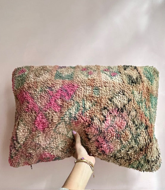 Dit prachtige wollen kussen is met de hand vervaardigd door vrouwen uit het Atlasgebergte. Ze is uit een vintage Boujaad tapijt gemaakt en de achterkant heeft een mooie kelim stof. Elk Marokkaans kussen is one-of-a-kind en wordt zelf geselecteerd door Little Nomad. Met een berber kussen van Little Nomad heb je dus een uniek en authentiek stuk in huis gehaald!