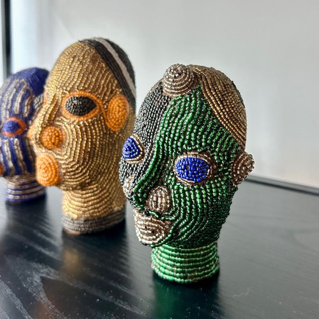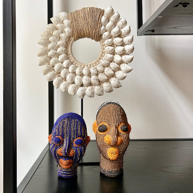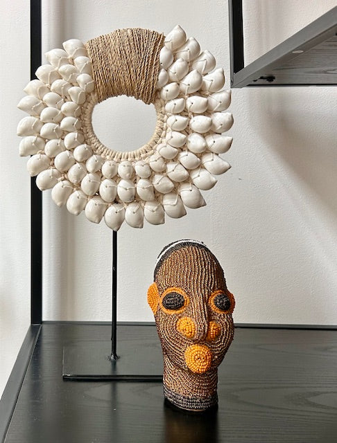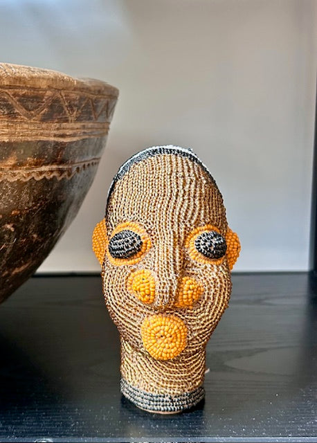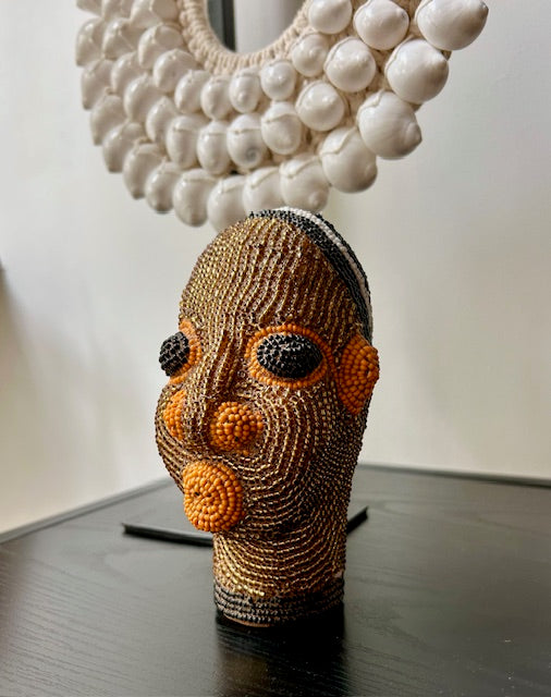 Dit stenen beeldje is handgemaakt in Marokko naar het evenbeeld van de Bamileke kralenhoofden. Een unieke eye-catcher in je interieur!