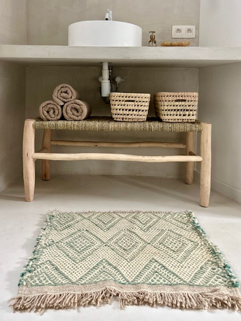 Een prachtig, authentiek Zanafi tapijtje of matje voor in de badkamer, slaapkamer, hal of onderaan de trap. Je vind wel een plekje voor deze unieke schoonheid! Flip ze om voor een andere look, de kleur is iets feller aan de ene kant en zachter aan de andere. 2 matjes voor de prijs van 1!